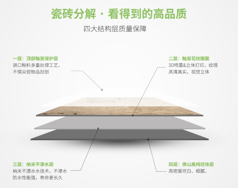 木紋磚具有逼真度高;本身具有阻燃,不腐蝕的特點(diǎn),是綠色、環(huán)保型建材;產(chǎn)品使用壽命長,耐磨,無需像木制產(chǎn)品那樣周期性地打蠟保養(yǎng)等特征。