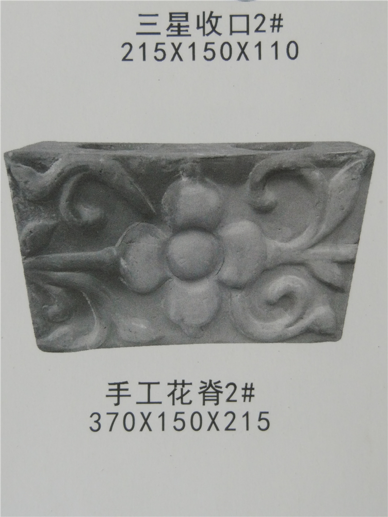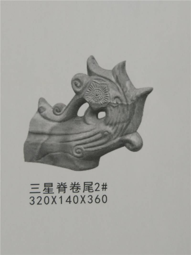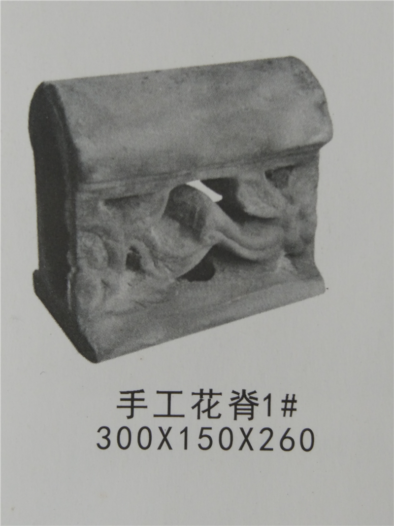 仿古青瓦是粘土燒制的,呈青灰色;粘土是某些鋁硅酸礦物長時間風化的產物,具有極強的粘性而得名。仿古青瓦主要構件及配件:勾頭、滴水、筒瓦、板瓦、脊瓦、擋勾、博古、正吻、三連磚、瓦條、圓混、雙龍戲珠、寶頂、花盤子、跑獸、角尖、花邊、瓦臉、等。